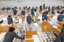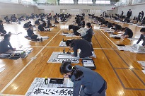 2限目には、3年生から6年生は、体育館で書き初めをしました。