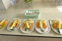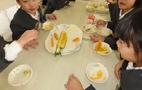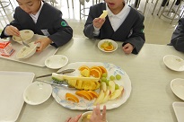 ランチルームで1年生がフルーツバイキングをしました。