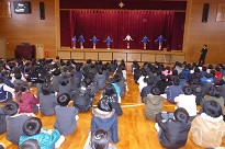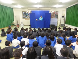 加賀市からパペットリーメッセンジャーズの岩山則生さんと人形たちが、河井小学校にきてくださいました。一緒に歌や劇で楽しい時間を過ごしました。