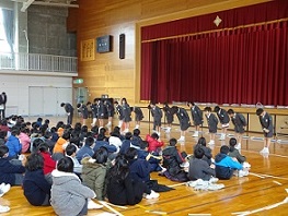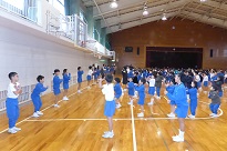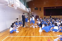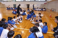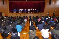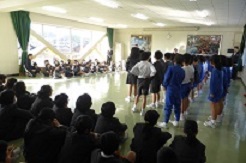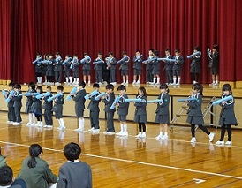 昨年に縄跳び検定で名人になった6人の児童の模範跳びがありました。さすが名人です難しい技も跳べます。