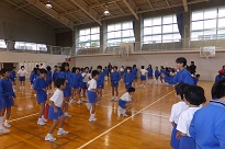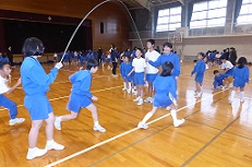 1年生ははじめてなので、うまく跳べません。6年生が、アドバイスをしてくれました。