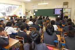 6年生は、5限目に、能登北部保健福祉センターの本間氏より、酒とたばこの害について、教えてもらいました。