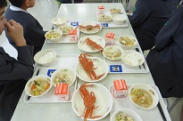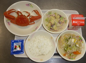 6年生は輪島の海の幸「香箱カニ」を給食時間に食べました。