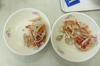 生きた香箱ガニです。 調理室で茹でました。
