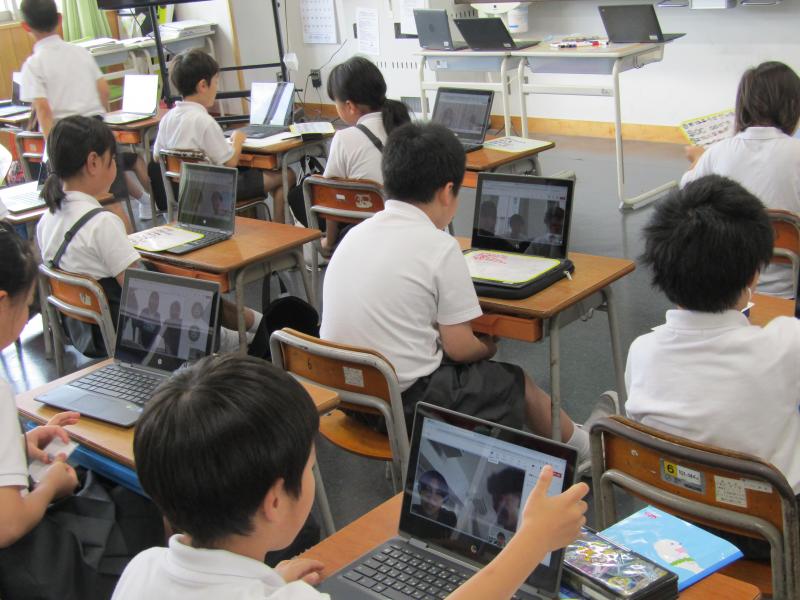 3年生がオンラインで大学生と交流しています。