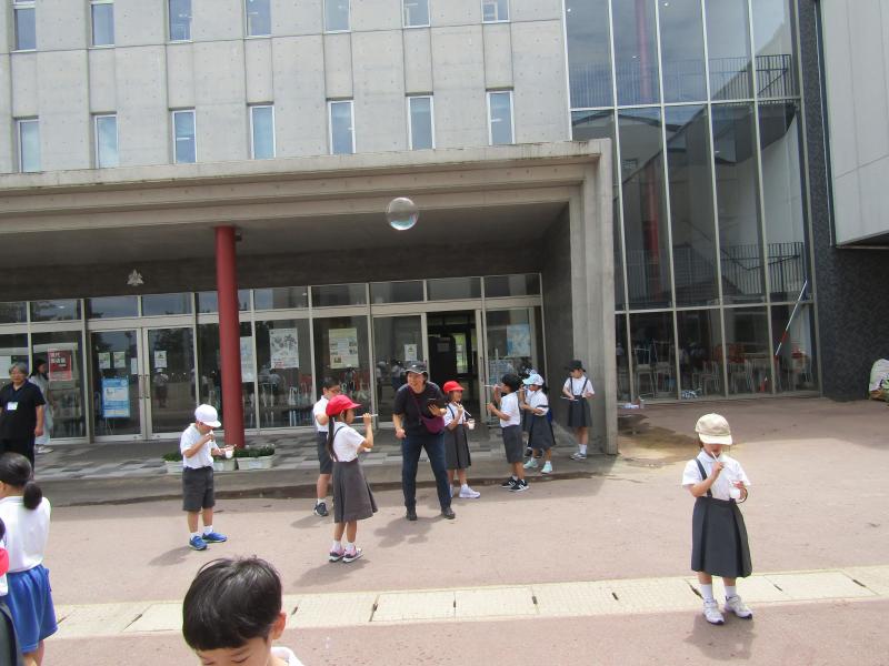 1年生がシャボン玉遊びを行いました。