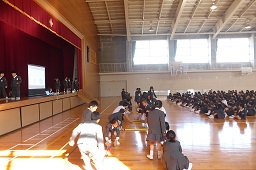 5年生は、20日に文化会館で「輪島市合唱の集い」に参加します。その時に歌う合唱曲をみんなに、聞いてもらいました。40人で心を一つにすてきな歌声を披露してくれました。