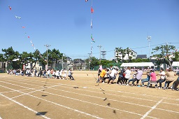 保護者の方の綱引きです。