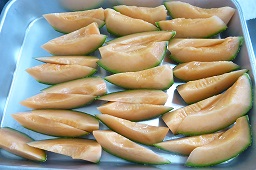 輪島市山本町で、育てたメロンを給食で食べました。