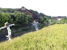 4年生が作ったかかしが、お米を守ってくれました。