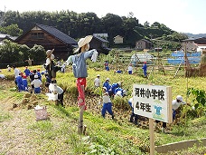 4年生は、塚田の田んぼで稲刈り体験をさせていただきました。