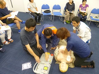夏休みのプール開放を前に、PTAの心肺蘇生法講習会が行われました。