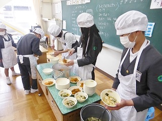 さすがは6年生!上手に均等に、ごはんやおかずを盛り分けてくれます。