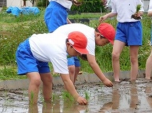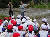 苗の植え方について説明を受けた後、さっそく田んぼへ!!
