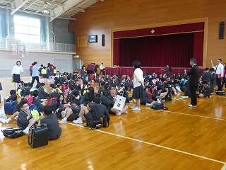 一度、体育館に全員が集合した後、帰宅する地区ごとに担当教員と一緒に下校しました。