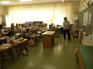4年生が総合で米や千枚田について調べたことを3年生に紹介しました。