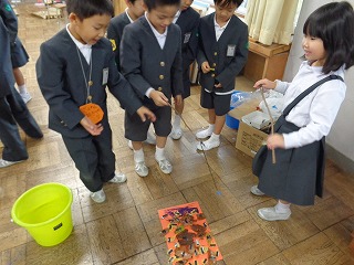 1年生が、自分たちでつくったおもちゃで遊ぶ「秋のいろいろランド」が開催されました。