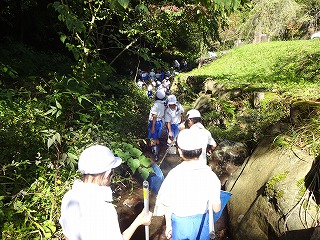 以前に、河原田小付近でも同じように水生生物の観察をしましたが、少し上流にいくことで、どのような違いがあるのかを調べました。