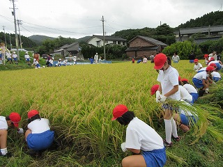 4年生が、5月に田植えをした稲を刈りにいってきました。