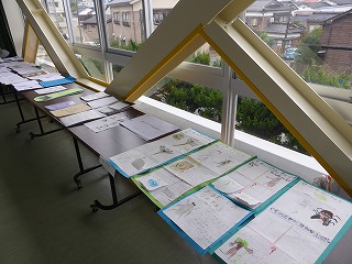 児童の夏休みの作品が、集会室『風』にあつめられました。