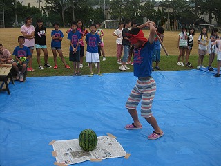 保護者の方の助けをかりて、スイカ割り、夕食づくり、花火、肝試しなどなど、盛りだくさんの内容に大盛り上がり!