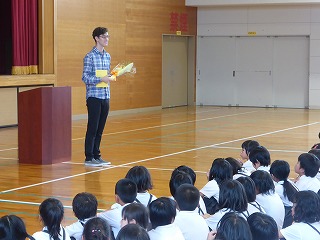 本年1学期よりALTとして子どもたちと英語の勉強をしてくださっていたアダム先生がアメリカに帰られることになり、お別れ会を行いました。