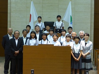 市役所の議場で行われた『子ども議会』に、本校から代表として6年生児童2名が参加しました。