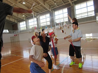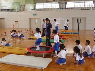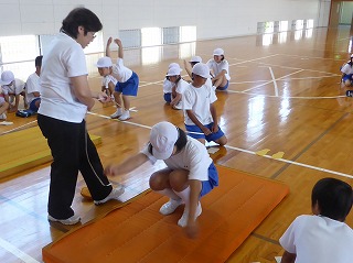 体ほぐしのマット運動から丁寧に教えていただいて、子ども達はとても楽しんで指導を受けていました。