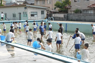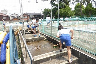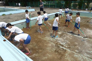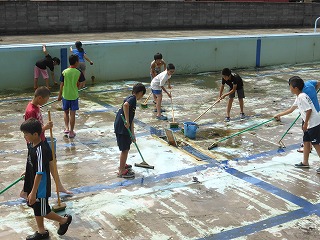 排水の都合で、大プールは改めて日をもうけて掃除を行う予定ですが、子ども達はとてもがんばって作業してくれました。