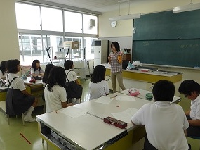歯科医師会保健指導事業の一環で、歯科衛生士の松本先生に講師としておいでいただき、5年生が歯に関する保健指導をうけました。