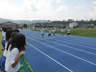マリンタウン競技場において、輪島市小学生陸上競技大会が行われ、6年生児童が参加しました。