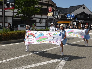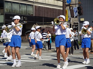 少し雨が心配されましたが、日頃の頑張りが天に伝わったのか、ほどよい気候の中、市祭パレードに本校の金管鼓隊が参加しました。