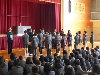 校長先生より、学級委員長、各児童委員会の委員長に任命書が手渡されました。
