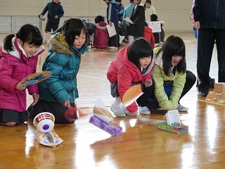 2年生が自分たちでつくったゲームで1年生をお・も・て・な・し(古い?)する、「おもちゃ王国」が、2・3時間目に行われました。