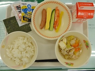 今日の給食は節分献立ということで手巻きずしが登場しました。