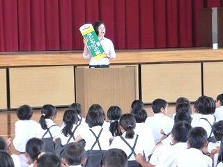 その後,体育館に集合して輪島警察署生活安全課の方から,不審者に会ったときの対応についてお話ししていただきました。