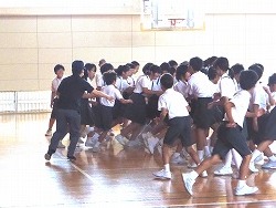 『いかのおすし』の確認だけでなく,実際に不審者から逃げる練習もさせていただきました。