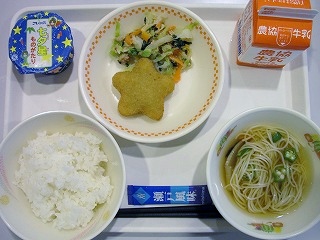 牛乳 ごはん 星のコロッケ 小松菜サラダ