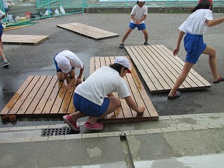 初日,5年生は小プール、プールサイド、更衣室、をお掃除。