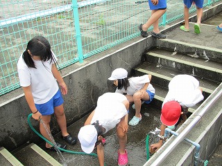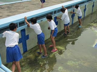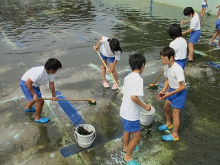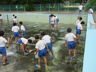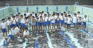 5・6年生が夏に向けて、プールを掃除してくれました。