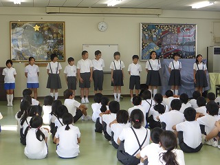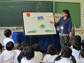 昼休みに図書ボランティアさんによるおはなし会が行われました。