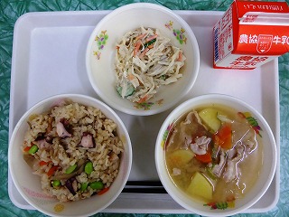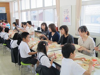 お家の方と一緒に食べられるということで,いつもにも増して笑顔一杯の1年生。