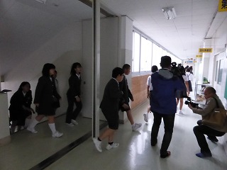 今日は津波警報が出たという想定で訓練を行い,避難指示が出てから3階へ避難し,人数確認が完了するまで3分40秒でした。