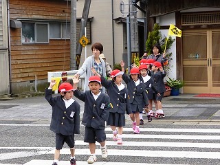 低学年は、校外へ出て安全な歩き方について勉強しました。