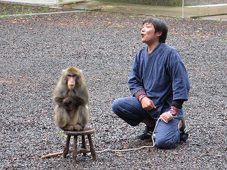 さるつかいのお兄さん曰く「雨なのであんまり芸をしないかも・・・」とおっしゃっていましたが,子ども達はおさるさんが棒に登っただけで大喜び!!