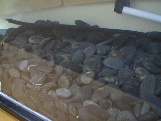 お腹に大きな卵黄のうをかかえた稚魚がいるはずなのですが、みんな上手に石と石の隙間に隠れてしまい、姿が見当たりません。