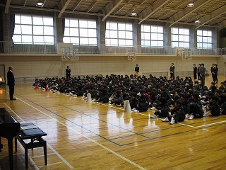 3~6年生は,体育館に集まって毛筆での書き初めです。