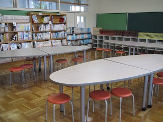 第2図書室は,調べ学習中心の図書室です。コンピュータ室の隣に配置し、調べ学習を
