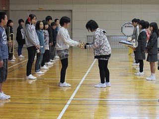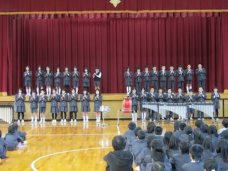 本日の6限目,金管鼓隊の引き継ぎ式が行われました。