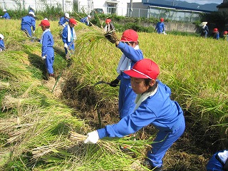4年生が総合学習の一環で,稲刈り体験をしました。